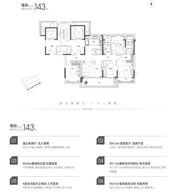 项目主力户型为143-330㎡四至五居大平层,采用精装交付标准,具体包括:
