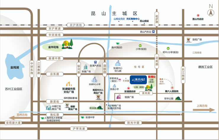 地理位置优越:项目位于张浦镇政府北侧,地处昆山“城市中心位置”,东邻上海、西接苏州园区、北连昆山主城、南靠旅游度假区,是长三角一体化发展的重要节点。