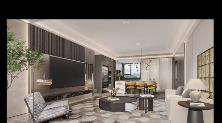 215㎡顶层大平层:一梯一户,四开间朝南,4.7米超长阳台,私密性与尺度感兼具