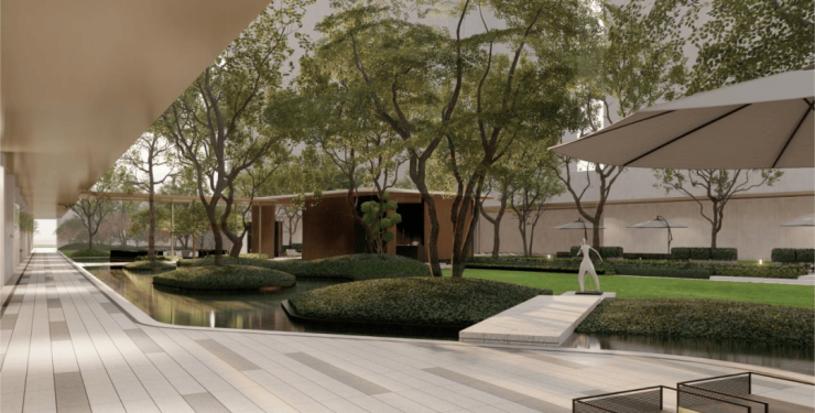 约5000㎡度假式园林,下沉会客、水上森林、林下漫道全龄共享