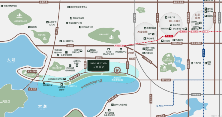 太太湖水星游艇俱乐部、太湖国际高尔夫球场、苏州海洋馆、太湖足球训练基地等世界级配套环绕