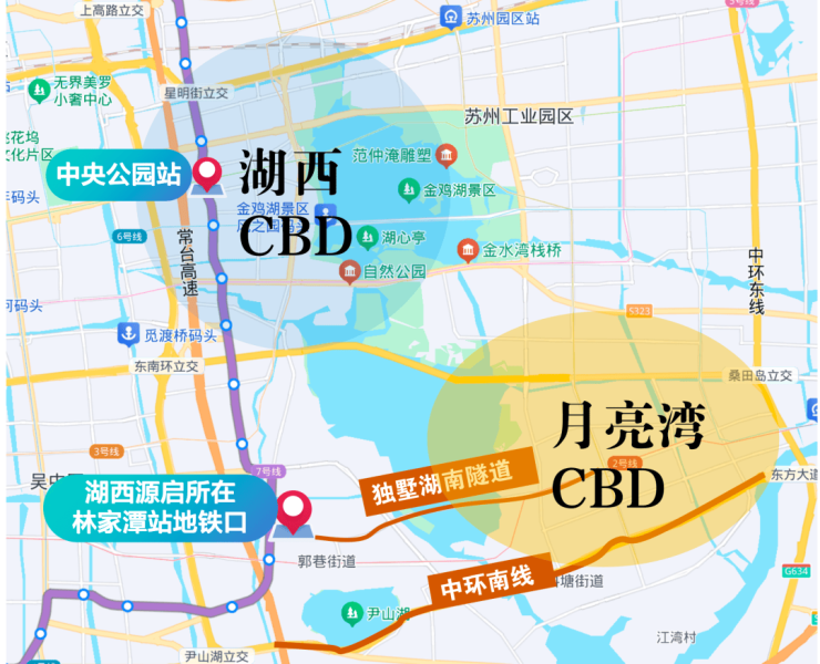 而自驾方面,上东环,还有独墅湖隧道、尹山湖隧道,也是直接一脚油门直通园区。