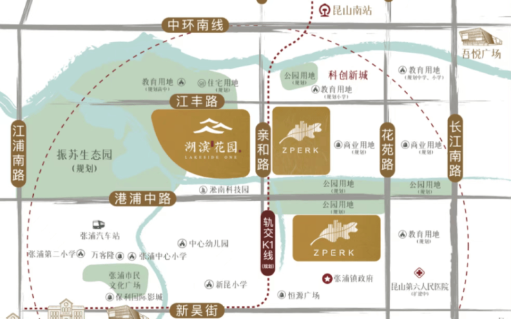 交通便利:紧邻长江主干路,距昆山南站6公里,未来K1线(接S1)东侧经过