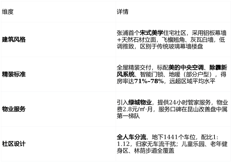 核心优势:宋式美学建筑 + 绿城物业 + 全屋精装(中央空调+新风) + 人车分流