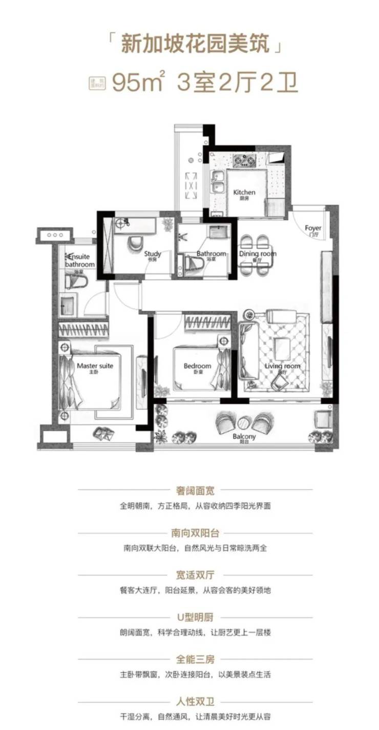 建面约95㎡户型,备受购房者青睐。