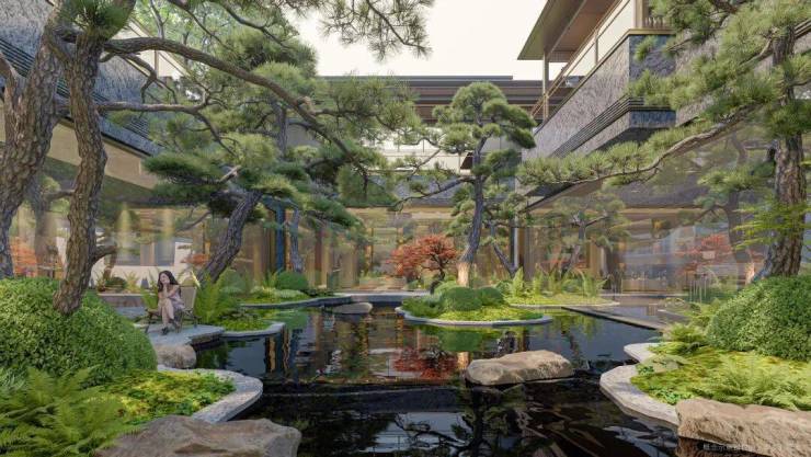 3纵中心花园:分布联排建筑组团中的3纵景观步道,打造中式园境,让归家成为一场穿越风景的旅行。