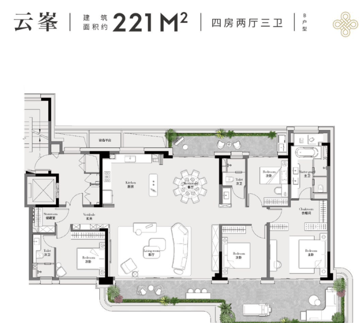以建面约221㎡户型为例,来感受一下项目户型的魅力——