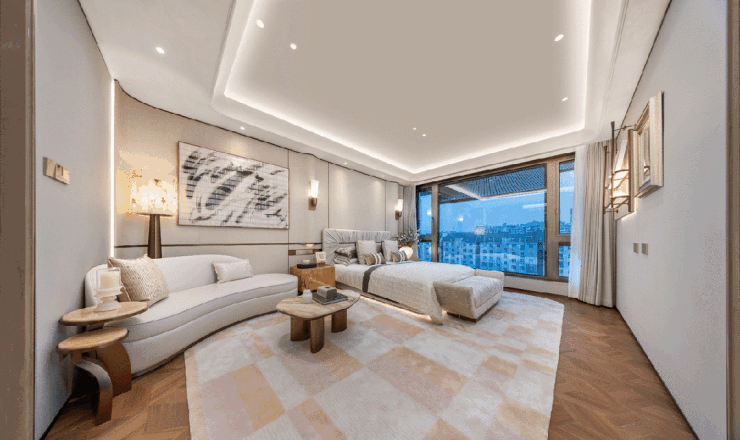 项目罕见地采用了全套房体系,四个卧室皆如五星级酒店的行政套房,配备独立卫浴,保障了每位家人的隐私与自在。总统套房级主卧,流畅自如洄游动线,仪式感与便利性拉满。
