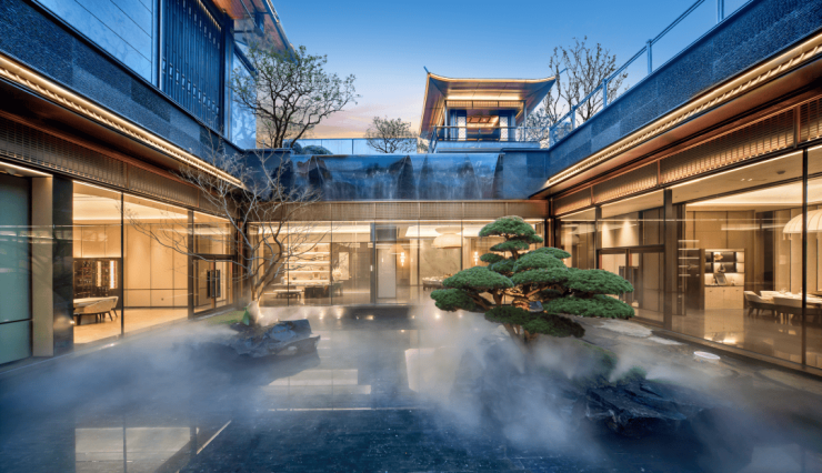 宋风美学:飞檐斗拱、苏式窗棂设计,下沉式会所配备室内高尔夫、茶室等私密社交空间。