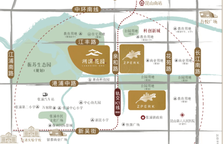 交通是城市生活的命脉,湖滨铂悦花园在这方面的优势尤为突出,构建起“自驾+轨交+公交”三位一体的立体交通体系,轻松融入长三角一小时生活圈。 自驾方面,项目紧邻长江主干路、中环快速路、京沪高速、312国道等重要交通干线,驾车15min即可直达昆山南站,30min畅达苏州主城区,45min抵达上海虹桥枢纽,真正实现“沪苏同城”的高效通勤。无论是日常工作出差,还是周末跨城游玩,都能享受到便捷快速的出行体验。 轨交规划同样令人期待,昆山轨道交通K1线(地铁11号线延伸段)将从项目东侧经过,未来在玉山广场站与苏州S1线实现换乘,可直达苏州园区、苏州火车站,并无缝衔接上海地铁11号线,构建起“沪苏昆”三城联动的快速通道。待K1线建成通车后,居者无需自驾,就能通过轨交快速穿梭于三座城市之间,极大拓展了生活半径。 公交系统也十分完善,项目周边1公里内设10个公交站点,覆盖昆山235路、330路、331路、高峰7号线等多条线路,无论是前往张浦镇内的各个区域,还是接驳昆山市区的其他交通枢纽,都能轻松搭乘公交抵达,为日常出行提供了更多选择。