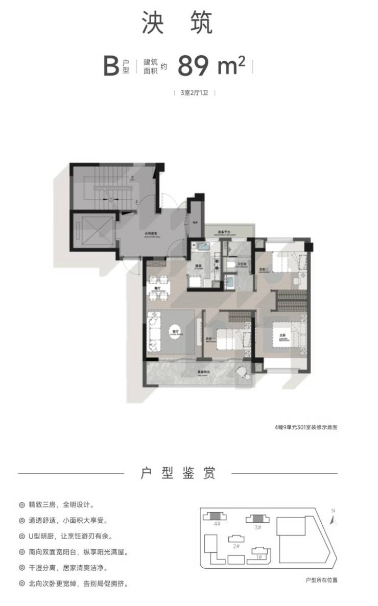 产品设计:小体量纯小高层社区(仅186户),户均空间大