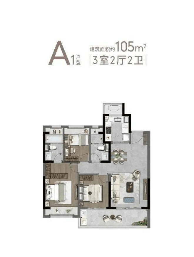 A1户型105㎡3-2-2