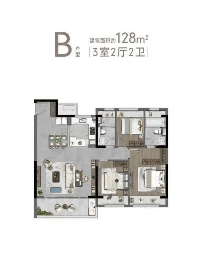B户型128㎡3-2-2