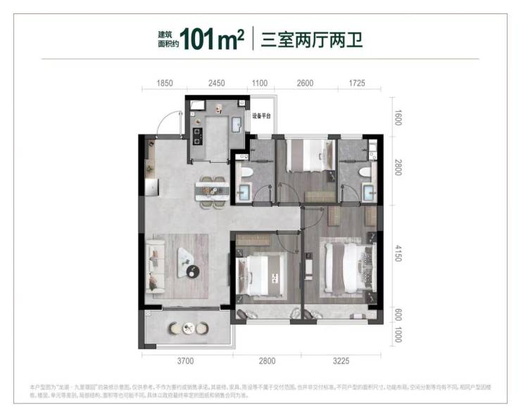 【建面101㎡3居】265.0-275.0万-分布于9# 10# 11# ,2梯4户,层高3.00米,总楼层23-26F