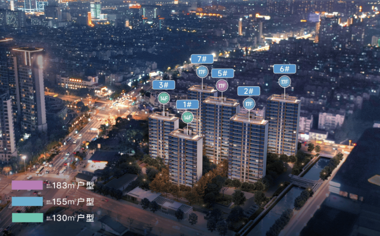 产品类型:6栋纯小高层(14-17层),总户数186户,全系2梯2户设计