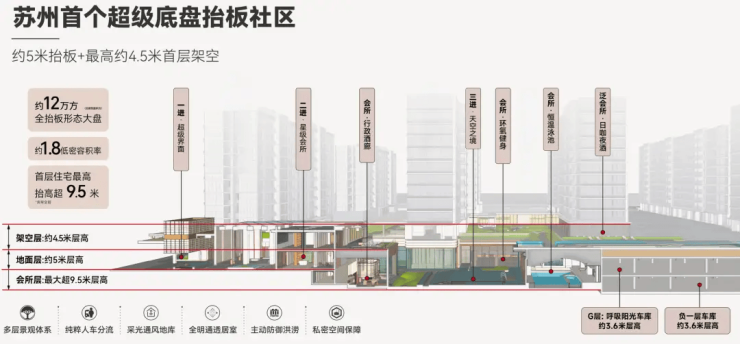 嘉盛天空之橙在社区配套方面也下足了功夫。项目打造了约9.5米抬高的立体社区,首层居住高度达到9.5米,整体抬高5米,分为地上层、地面层和地下会所层。地上层设有架空层4.5米,形成了人车分流的立体庭院和阳光车库;地下层则打造了高达9米的星级会所,总面积超4800㎡,内含恒温泳池、24小时健身房、电竞馆、剧本杀空间、萌宠天地、共享厨房、自习室等新潮空间,充分考虑到年轻人的兴趣和生活方式。此外,项目还复刻了圣托里尼南法度假风情,将安曼酒店的度假氛围融合到社区的每个角落,以约9米高差瀑布为核心,打造超约8000㎡立体景观,约800㎡澄澈水景贯穿社区,连廊、台阶错落分布,让居民在家就能享受度假般的惬意生活。