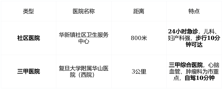 🏥 医疗:急诊不远,三甲不慌