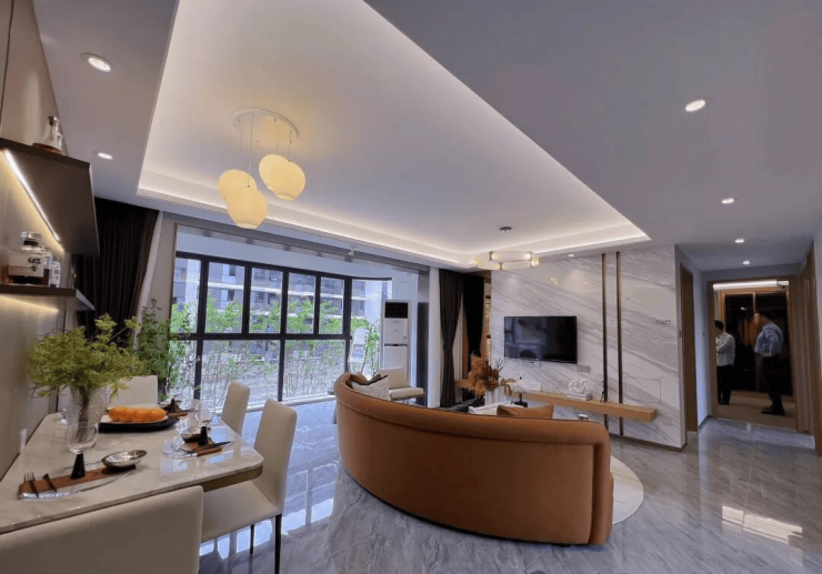 特别值得一提的是,91平方米起的小户型也采用了“客厅+餐厅+厨房+阳台”一体化布局,实现约13米的朝南大开间和超6米的弧形全景阳台,视野开阔,通风采光俱佳,小户型也能住出大平层的感觉。