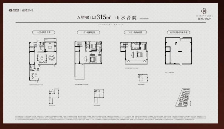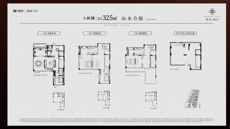 山水合院:建面约285-340㎡(3层毛坯交付),一层为公区,二层双套房,三层整层主卧套房附带南北双露台