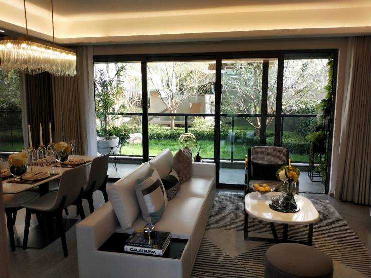 精装交付,含中央空调、地暖和新风系统,物业是中南置地。