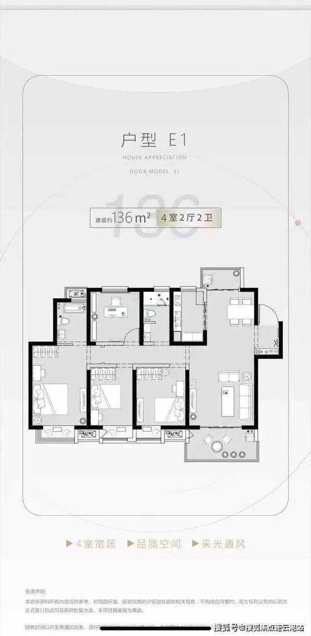 约129-136㎡:四室两厅两卫,主卧套房设计,适合多成员家庭