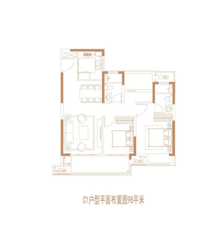 3室2厅2卫(98㎡):约105万