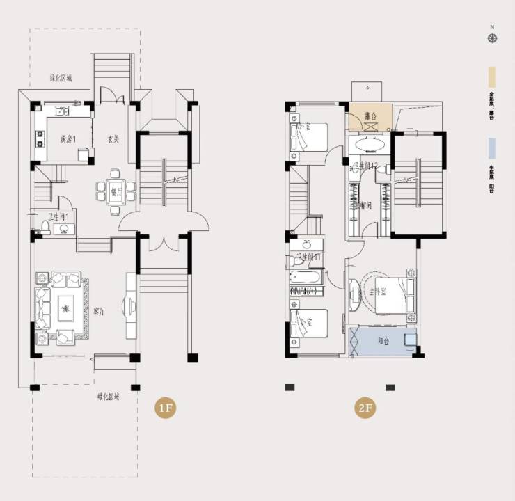 院落空间美学:围合式院落与空中露台结合,拓展居住视野