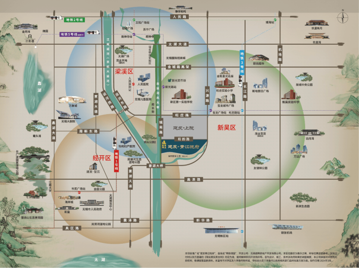 路网 长江路、环镇北路、菱湖大桥 5分钟车程 无缝连接经开区、梁溪区,快速通达太湖新城、苏锡常高速