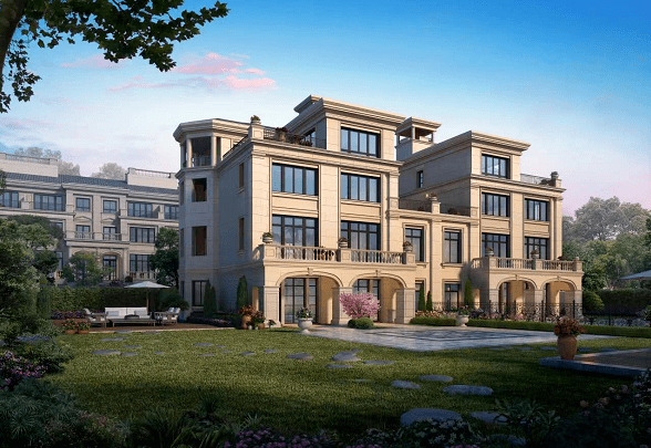 联排别墅采用法国古典主义建筑风格,建筑面积约2.2万方。