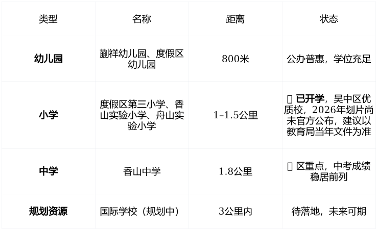 ⚠️ 重要提示 :目前 无官方2026年学区划片文件 ,但项目周边三所小学均为近年新建优质校,入学概率高,建议家长提前咨询吴中区教育局。