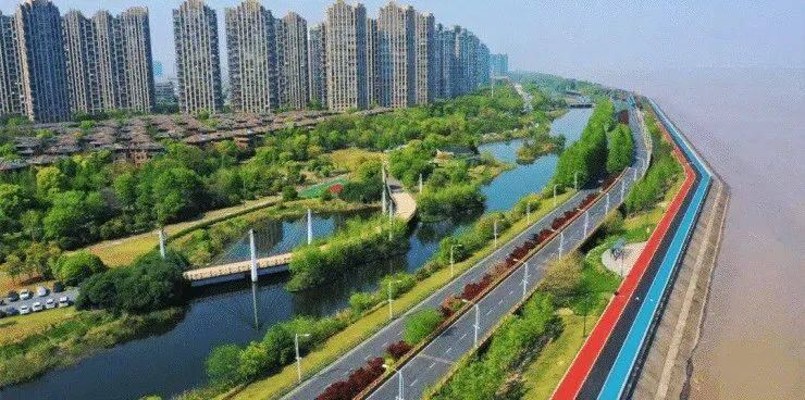 下沙沿江绿道设有跑步道、散步道、自行车道,还有观潮广场、滨河公园等。