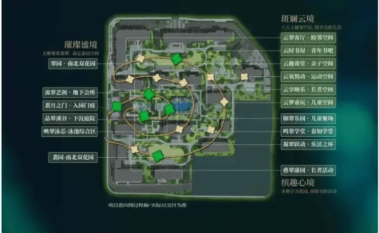 绿城桂月云翠园的社区配套堪称一流,项目内部规划了近千方泳池综合区、下沉式庭院、南北超5000㎡主题花园以及五大主题架空层等多元配套设施。五大主题架空层构建了“云系”社交矩阵,包括云趣课堂、云时书屋、云梦童玩、云氧悦动、云翠客厅等,形成24小时不打烊的共享空间。云趣课堂是亲子互动的好去处,家长可以和孩子一起在这里参加各种手工制作、科普讲座等活动;云时书屋则为青年提供了一个安静的阅读和学习空间;云梦童玩是孩子们的乐园,各种游乐设施让孩子尽情玩耍;云氧悦动是健身爱好者的天堂,配备了各种健身器材;云翠客厅则是邻里之间交流和聚会的场所,促进了邻里之间的感情。