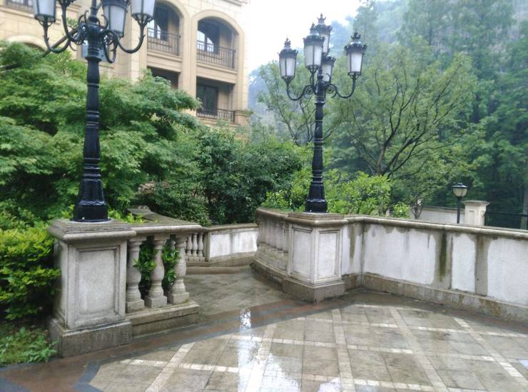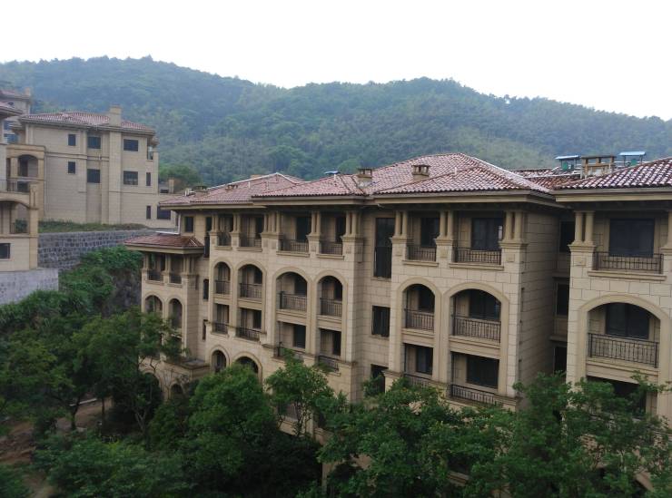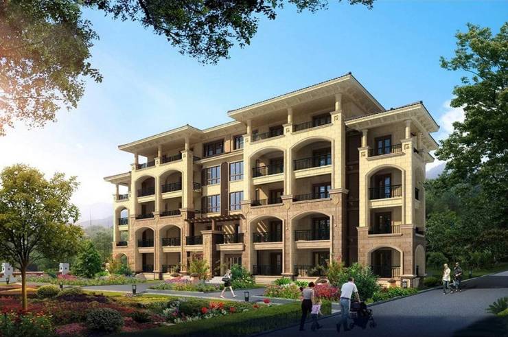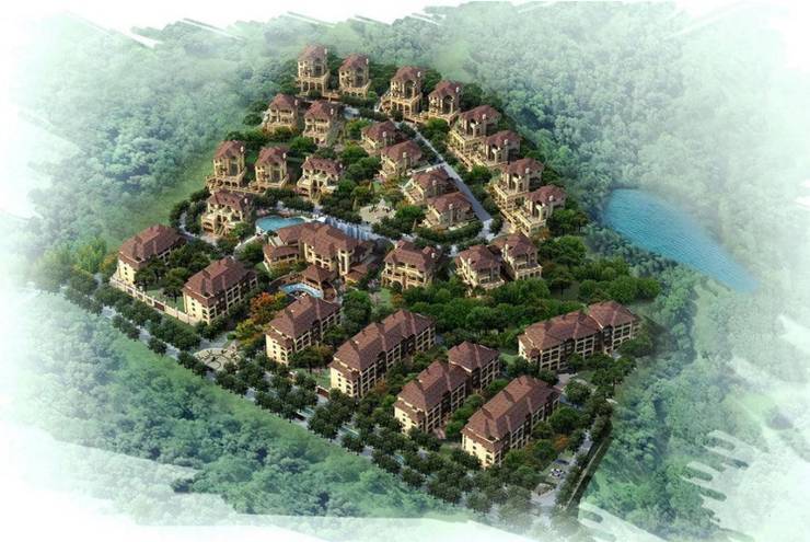 建筑与园林设计精美:外立面采用米色系天然砂岩及高档仿石材涂料,呈现出西班牙风格,砖红玻璃瓦、绛紫色门窗等元素,视觉效果好。园林融合山体,打造出"山居十二景"和7重绿化景观体系,实现了人与景观的完美结合