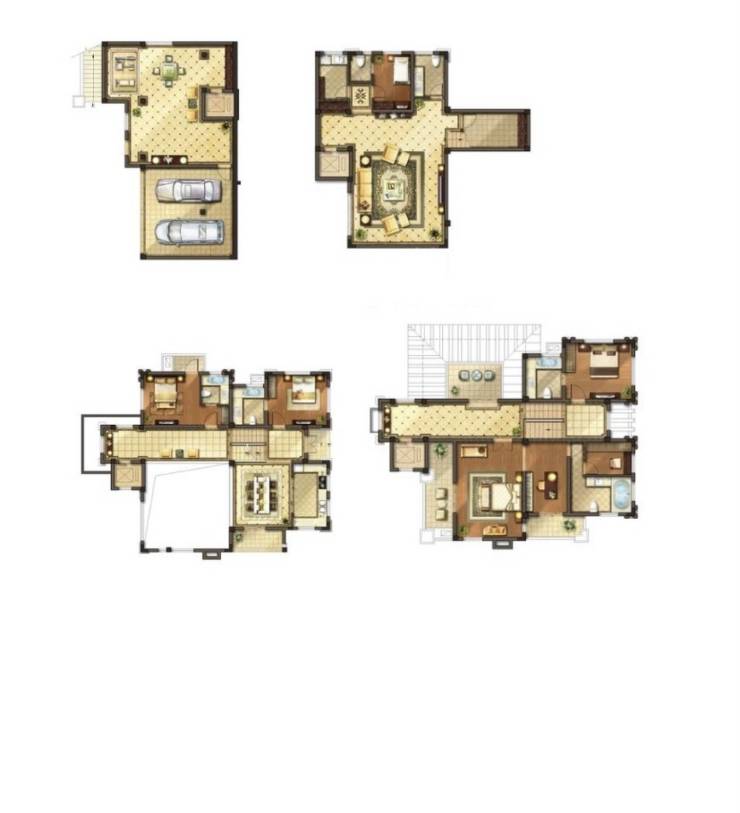户型设计合理:有公寓和别墅等多种住宅类型,别墅户型有双拼、独栋等,面积跨度较大,从273-661㎡不等,部分户型赠送大露台和院子,得房率高,实际使用面积可观