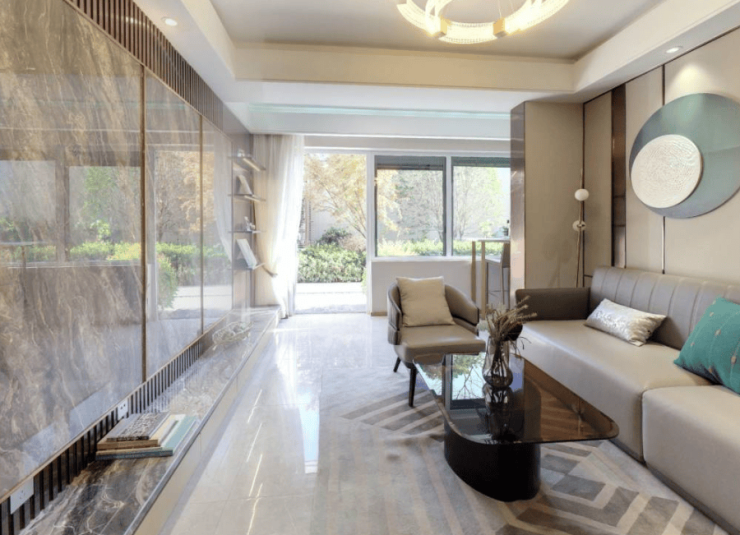 装修标准:全屋精装交付,装修标准约 3500 元/㎡。配备中央空调、新风系统,选用科勒、方太等一线品牌建材,细节上注重干湿分离与收纳系统。