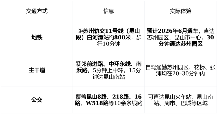 真实通勤场景 :业主多为 昆山主城区、苏州园区、张浦企业 白领, 现靠自驾,2026年地铁开通后将实现“双轨通勤” ,通勤弹性极强。