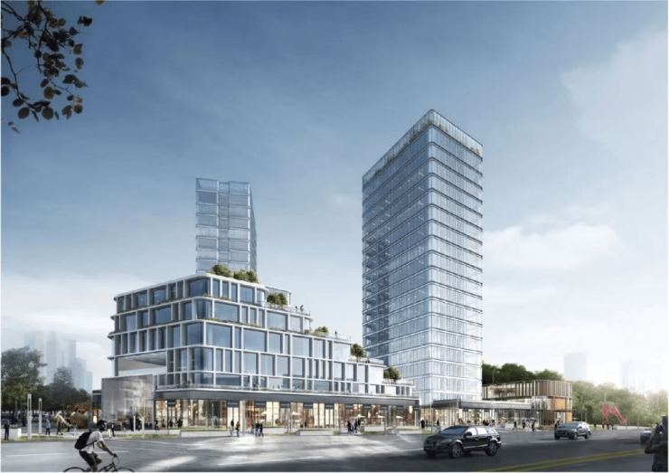 建筑与设计:项目由1号楼(20层)和3号楼(19层)组成,采用三面玻璃幕墙设计,实现约270度全景视野,将山景引入室内。层高方面,一楼大堂约4.7米,其余单层约3.85米。