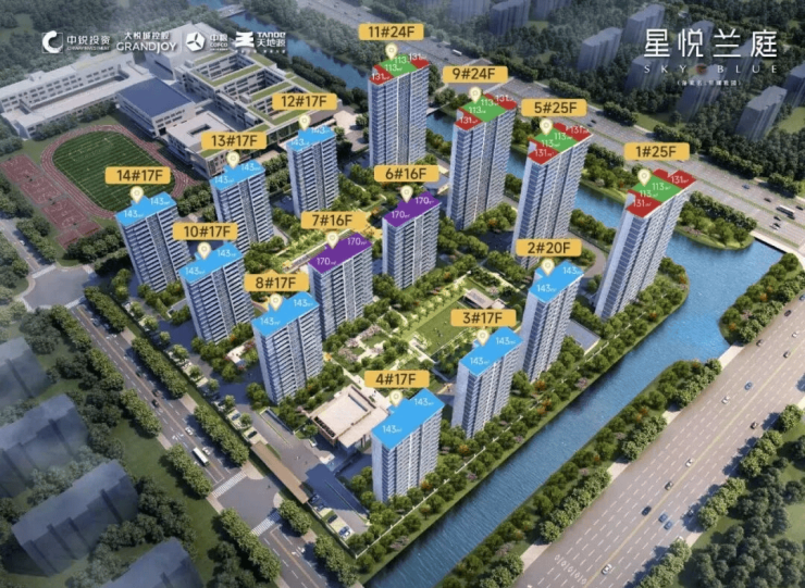 开发背景:由中锐集团、大悦城控股、天地源股份三大品牌房企联合开发,定位为"蓝幕系"高端改善住宅,总建面14.3万㎡,容积率仅1.8,绿化率达42%,是盛泽CLD(中央居住区)标杆项目
