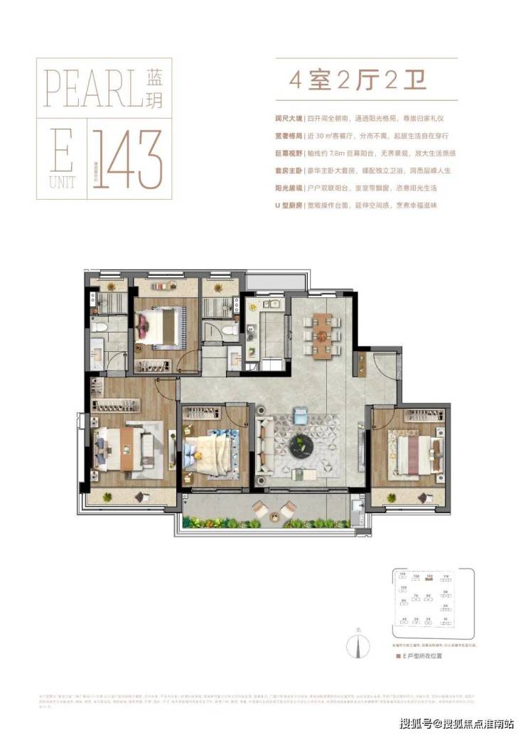 产品亮点:采用Low-E玻璃+金属铝板外立面,打造"一环两轴五境八景"园林景观,中央双园面积超1.4万㎡,配备全龄活动空间。主力户型为113-170㎡三至四房,精装交付标准含中央空调+新风系统