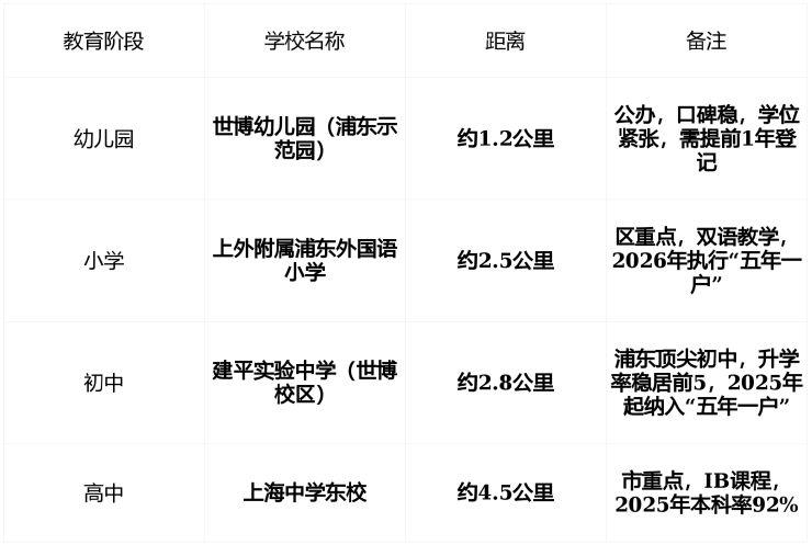 ⚠️ 注意 : 2026年入学家庭需在2024年12月前完成户籍迁入 , 建议购房前致电浦东教育局确认“五年一户”执行细则 。