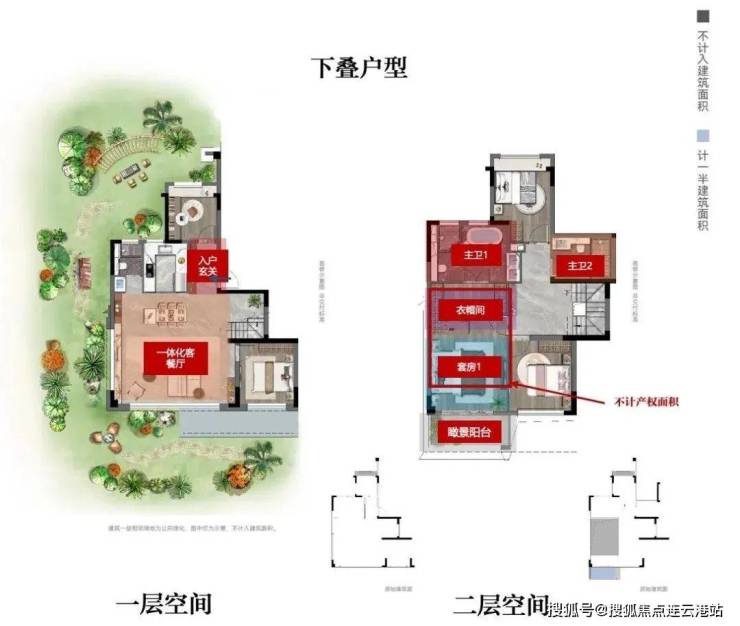 下叠建面约168㎡5房2厅3卫,采用LDKB一体化设计,一层餐客厅直接连通门前绿化,附赠约40-300㎡庭院