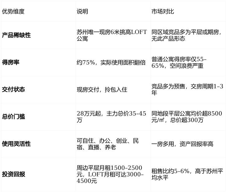 项目定位:苏州唯一现房6米挑高LOFT公寓社区