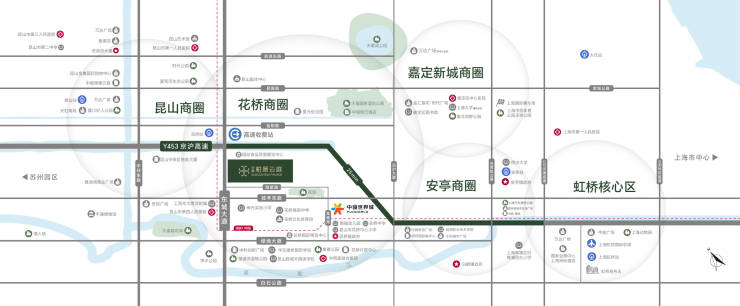 高速路网:紧邻京沪高速花桥出口(1.5公里),25分钟直达上海虹桥商务区