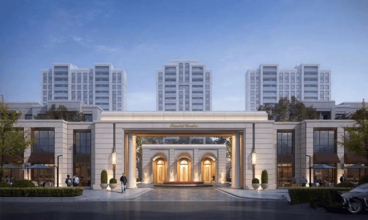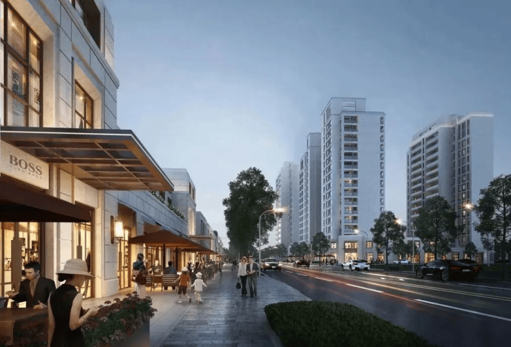 整个区域以九宫格的布局展开,涵盖了住宅+商业+教育配套,项目继承经典海派的建筑风格,通过外立面层次的打造和立面细节的打磨,使得小区外观更有现代感。