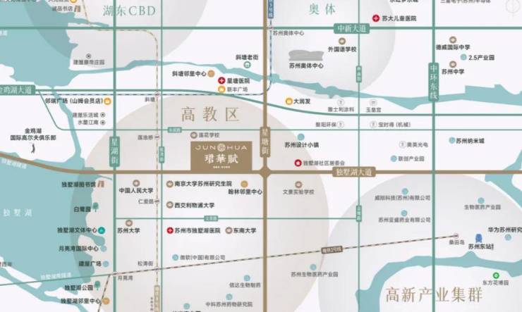 超30多所中外高等学府,超3000家国际智慧科企,科技与教育勾勒一条园区文化脊线。独墅湖高教区高知人才众多,人文底蕴浓厚;工业园区图书馆、文体中心、独墅湖影剧院等文化配套密布,文化气息浓郁。