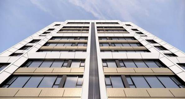 局部遴选石材、铝板等臻贵材质,主体结构铝模工艺,屹立城市美学地标。