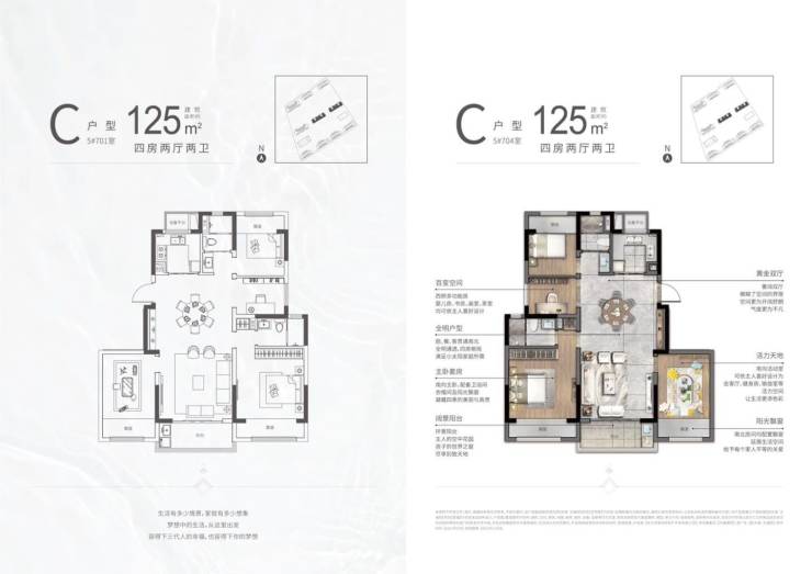 125㎡四室两厅两卫:方正户型,主卧套房设计,带独立卫生间与衣帽间