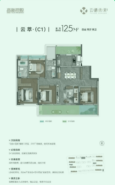 高实得率 改善精装四房主城难得约125-165㎡全四房改善洋房,以洋房高得房率为基底,叠享空中花园+飘窗(全赠送)、南北双阳台(半赠送)等多维不计容空间,以最高超100%有效空间增值,重新定义改善型居住标准。