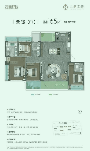 :首创"奇偶错层"设计,每户配建不计容空中花园,实现立体绿化覆盖。