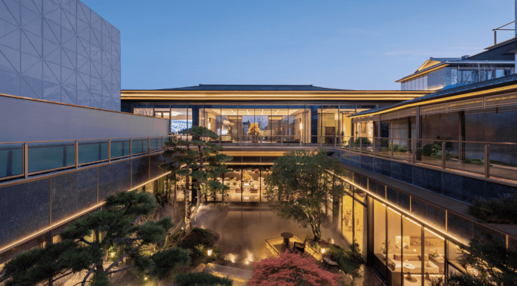 项目以宋代建筑为灵感,打造昆山首个 下沉式宋风美学庭院 ,融合《桃园雅集图》意境,构建“可游、可观、可居”的诗意生活场景。
